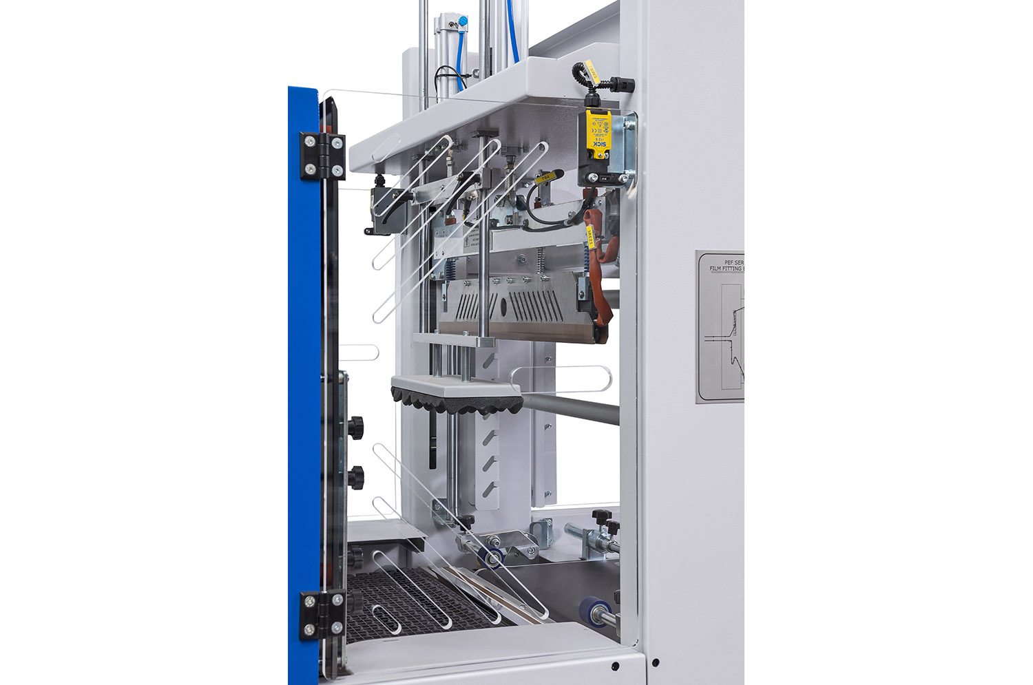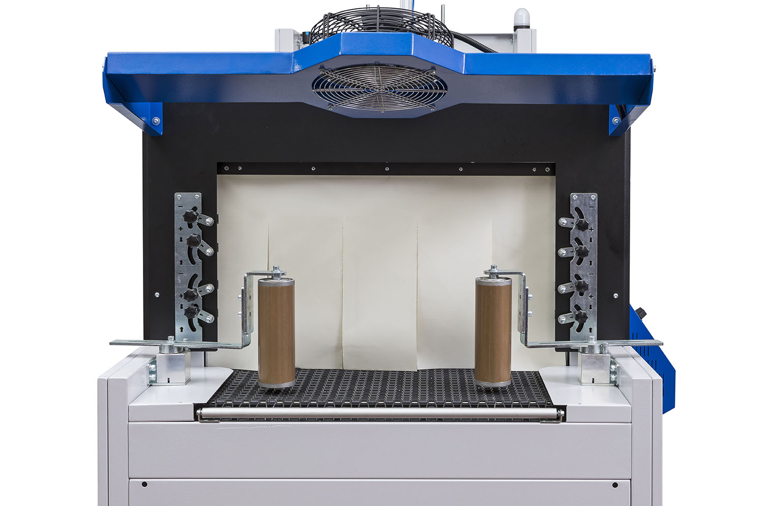 Included: feet for the machine fastening, wheels, sponge coated press plate to stop products, cooling fan at the tunnel output.